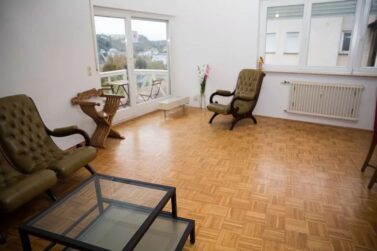 On the road to Kirchberg, about 2.5km from the European Investment Bank (EIB). 2 bus stops are right outside the flat (L25 and L8 run every 5-10min). Additionally the train station is at 4min on foot and goes to stop 'Red Bridge' (Tram) or directly to the main train station with connections to Paris via TGV.