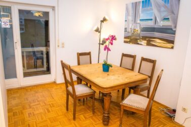 On the road to Kirchberg, about 2.5km from the European Investment Bank (EIB). 2 bus stops are right outside the flat (L25 and L8 run every 5-10min). Additionally the train station is at 4min on foot and goes to stop 'Red Bridge' (Tram) or directly to the main train station with connections to Paris via TGV.