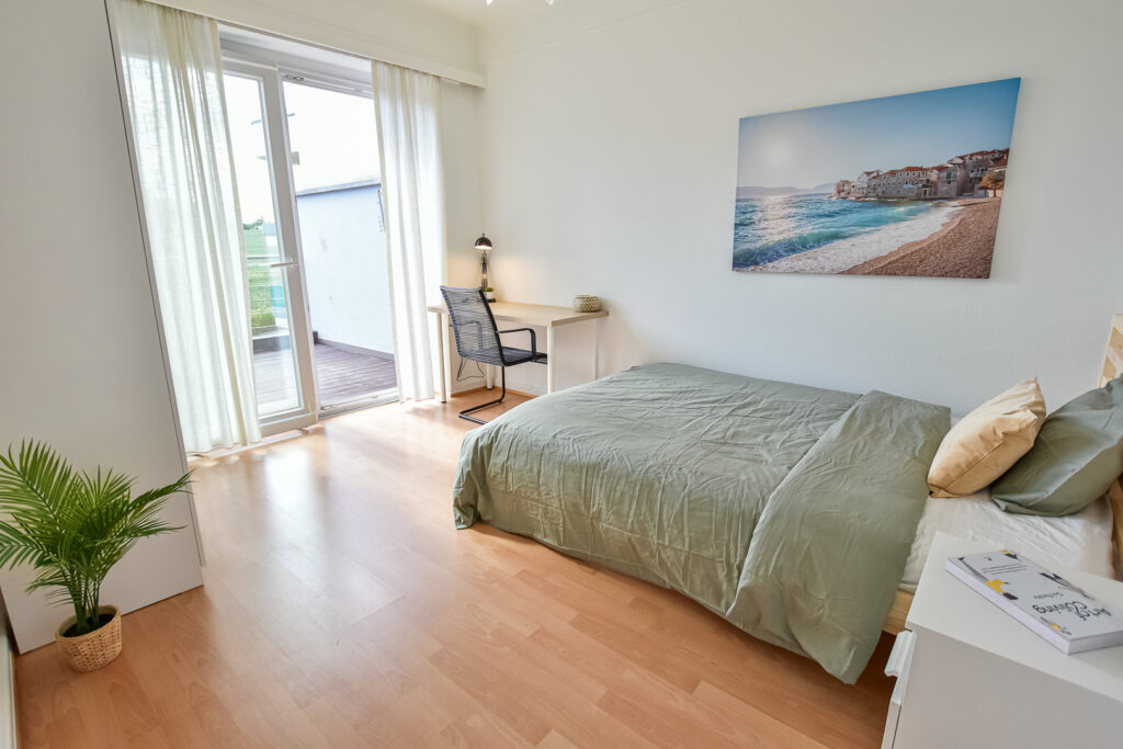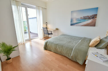 This furnished double bedroom with private terrace is in our brand new project 'MATISSE'. The house is located very central, at rue des Aubépines, right next to Merl park. It has excellent bus connections. The house has 1 equipped kitchen, 2 bathrooms, 1 dinning room, as well as a beautiful private garden.