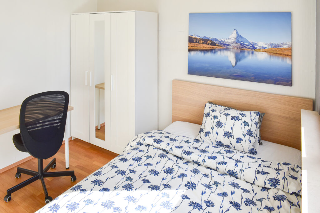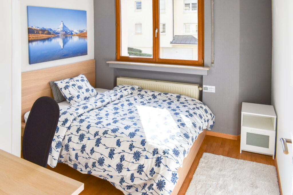 This is a trendy neighborhood, within walking distance to the main train station (Gare) and tram (to Kirchberg), with supermarkets, shops and restaurants nearby. DISCLAIMER: Images shown on this page do currently not reflect the actual room but show a similar sized room and furniture. Actual room to be seen during viewings.