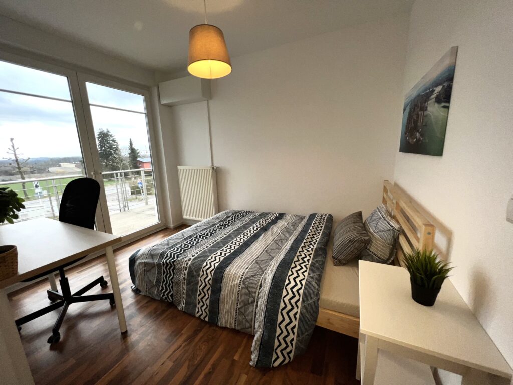 This furnished double bedroom is in our new project 'DURER II'. The flat is located in Cents with easy connection to the airport, Kirchberg and Gare Centrale. It has a fully equipped kitchen, a little lounge with a balcony, one main shower, and a guest toilet.
