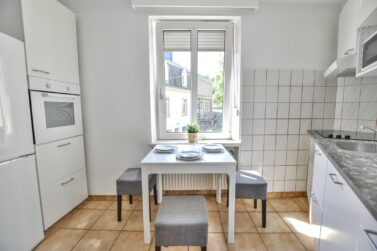 This furnished double bedroom is in our new project 'MAGRITTE'. The house is located in the heart of the city center, at rue des Trois-Glands, right next to park that leads to MUDAM/Kirchberg. It is 5min walk to Panoramic elevator and 15min walk to Pfaffenthal/Kirchberg Funicular. The house has 2 equipped kitchens, 2 bathrooms (+1 private), a cozy common area as well as a small garden.
