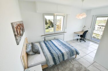 This furnished double bedroom is in our new project 'DURER I'. The flat is located in Cents with easy connection to the airport, Kirchberg and Gare Centrale. It has a fully equipped kitchen, a little lounge with a balcony, one main shower, and a guest toilet.