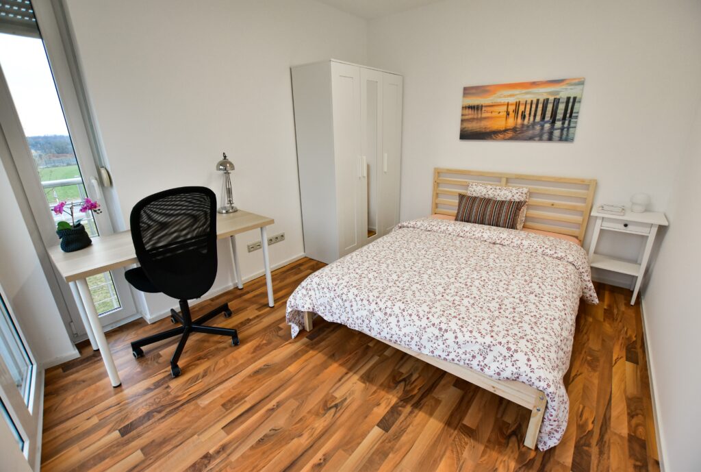 This furnished double bedroom in our modern project 'DURER II'. The flat is located in Cents with easy connection to the airport, Kirchberg and Gare Centrale. It has a fully equipped kitchen, a little lounge with a balcony, one main shower, and a guest toilet.