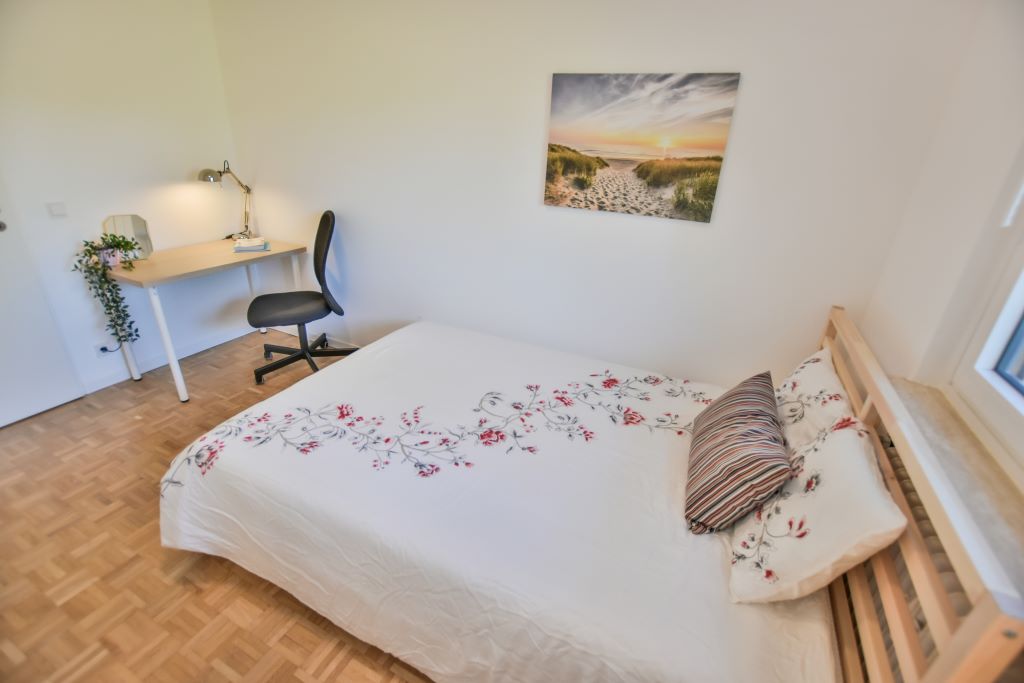 The fully furnished double bedroom in the Coliving Property "Morisot" is located in Senningerberg in close proximity to Kirchberg (15min by bus). It has easy and fast connections to Findel (airport) and the offices of Ferrero or Accenture for instance, a cycling track is right next to the property. The flat has a fully equipped kitchen, a beautiful lounge, together with one main bathroom and a guest toilet.