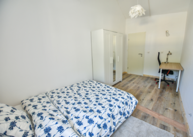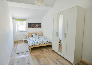 The furnished double bedroom is in our new project 'Leighton'. The house is located in Neudorf, has 2 floors and 5 bedrooms. The location is right next to Kirchberg and with easy connections to the city center. It has a fully equiped kitchen, together with one main bathrooms.