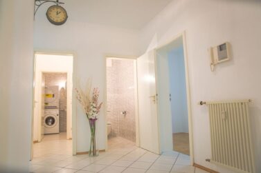 On the road to Kirchberg, about 2.5km from the European Investment Bank (EIB). 2 bus stops are right outside the flat (L25 and L8 run every 5-10min). Additionally the train station is at 4min on foot and goes to stop 'Red Bridge' (Tram) or directly to the main train station with connections to Paris via TGV.