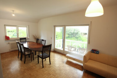 The large furnished double bedroom (A) is on the 3rd floor of the modern brand new duplex (VanGogh) with large windows, an open balcony and plenty of natural sunlight. It has an excellent view onto the valley and is right next to Kirchberg as well as 400m from the train station. It has a spacious lounge and kitchen, together with one main bathroom and one separate guest toilet. An additional bonus is that it has only recently been completely redone.